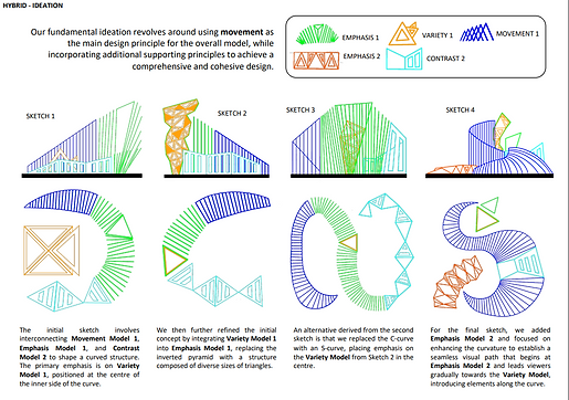 In Assignment 2, I learned more about cooperating with my group mates and creating movement in the model. This helped me gain a better understanding of the design principle of movement. Additionally, I think i have learned more on how to effectively communicate my understanding and application of design principles through a series of explorations and manipulations of design elements.